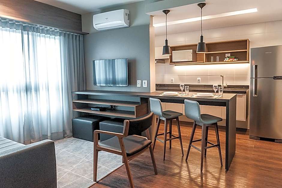 With Mostardeiro Street views, this air-conditioned room features an LCD cable TV, mini-bar and work desk.
